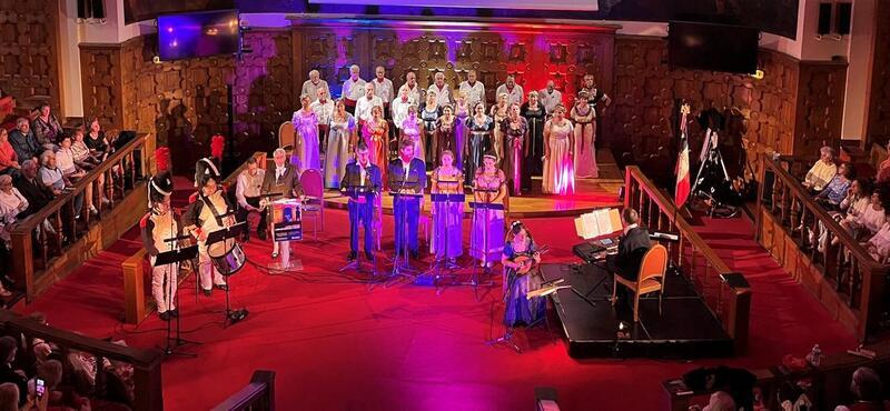 Les "Chœurs napoléoniens" (20 choristes, 4 solistes, 3 narrateurs, une mandoliniste, une harpiste, le chef de chœur au synthétiseur) seront accompagnés d’un tambour et d’un fifre des «Tambours de l’Odyssée».