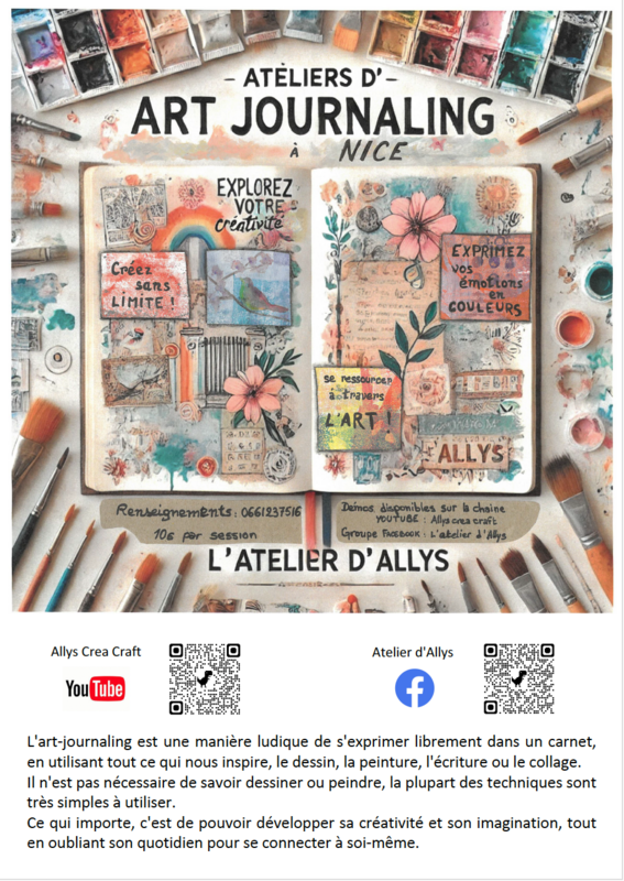 L'art journaling est une manière d'exprimer ses émotions et ses ressentis en images avec une liberté totale d'utilisation de matériel et de techniques. Ce moyen d'expression s’assimile à de l'art-Thérapie.