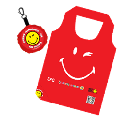 Notre balle en mousse se modifie par la création d’un « Shopping Bag/Sac de courses réutilisable » et conserve la forme du Nez Rouge quand il est fermé. Il est accessible au tarif de 2,50 €.