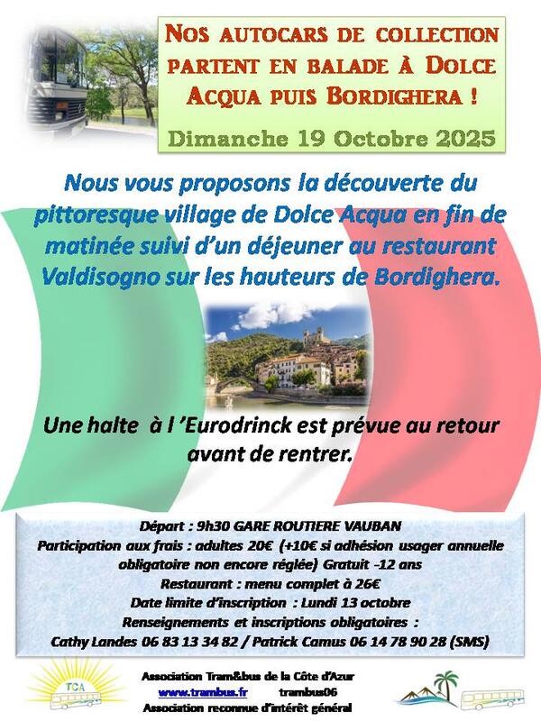 Notre association propose, à bord de ses bus et cars "vintage", des sorties au départ de Nice.