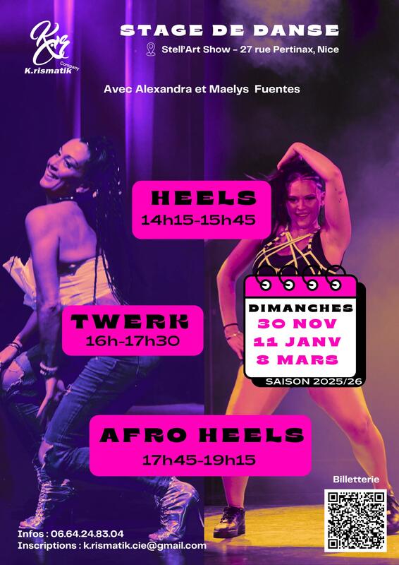Rendez-vous chez Stell'Art Show au 27 rue Pertinax, Nice pour un apreès-midi de danse avec 3 disciplines - 3 énergies - 1 seule vibe :
